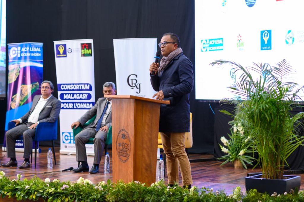 Fait marquant de la journée, l’allocution de Rivo RAKOTONDRASANJY, Président du FIVMPAMA (Fivondronan’ny Mpandraharaha Malagasy), s’exprimant pour le compte du Consortium Malagasy pour l’OHADA, qui réitère que ledit Consortium, entente entre le Groupement des Entreprises de Madagascar, le Fivondronan’ny Mpandraharaha Malagasy et le Syndicat des Industries de Madagascar, est convaincu de la pertinence de l’adhésion de Madagascar à l’OHADA, et de leur souhait de voir cette adhésion se concrétiser dans l’immédiat. Il souligne, dans son allocution, le besoin du secteur privé malgache de jouir de la sécurité juridique offerte par les Actes Uniformes et par l’ensemble du système OHADA.